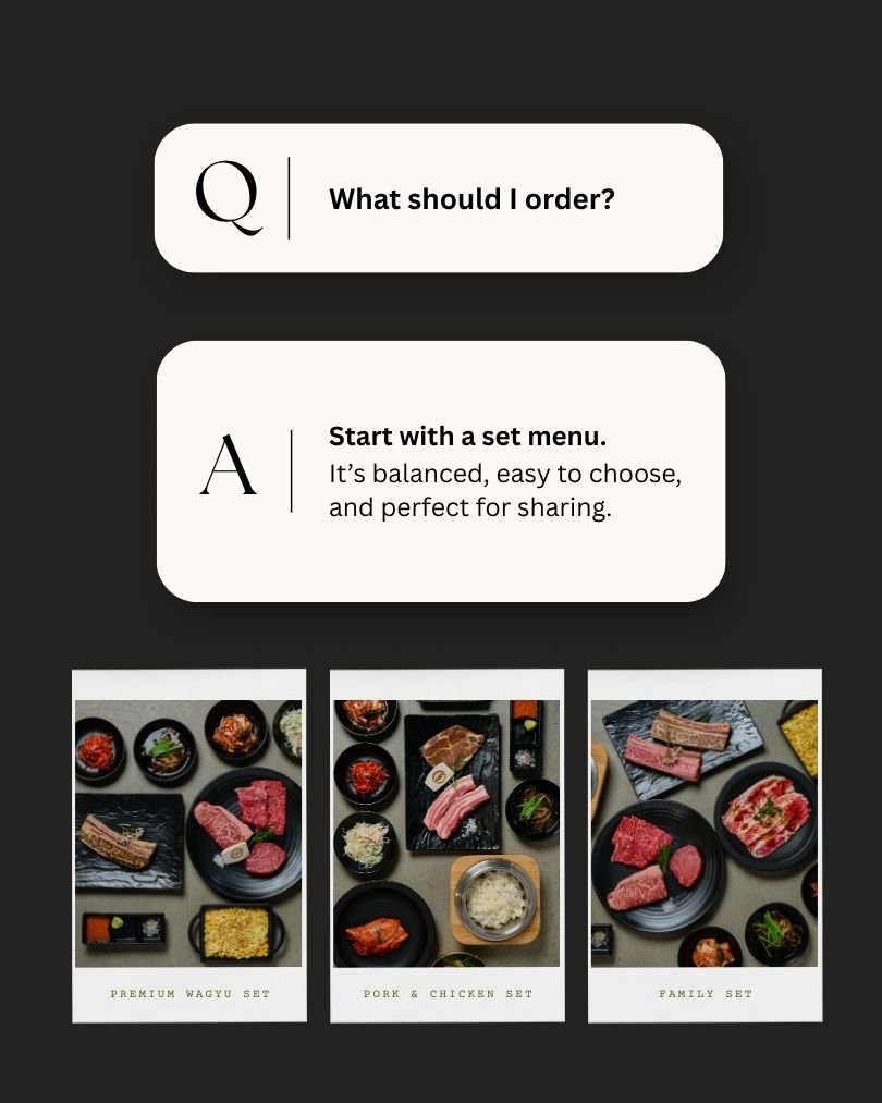 A curated selection of four premium Wagyu cuts, including Sirloin and Eye Fillet, served with Hot Stone Pot Rice and unlimited Banchan access for a refined BBQ experience.